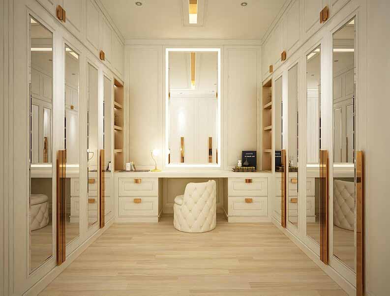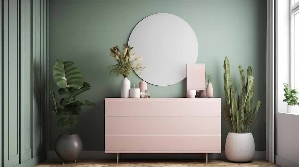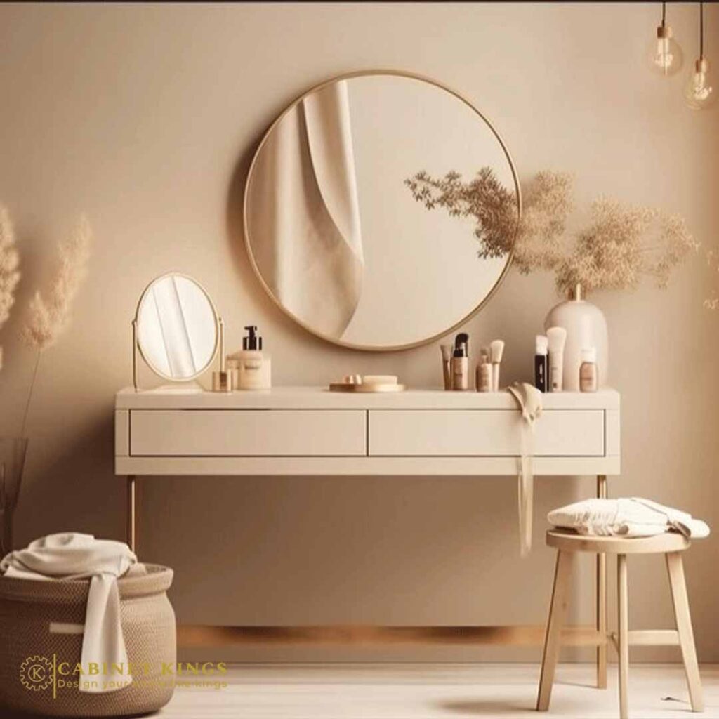 Dressers” Unique designs to change the decor, adding touches of beauty “A simple Dressers and functional cabinet with small shelves, a small number, and a large mirror placed on the wall opposite the cabinet to add light and elegance. Get a free consultation